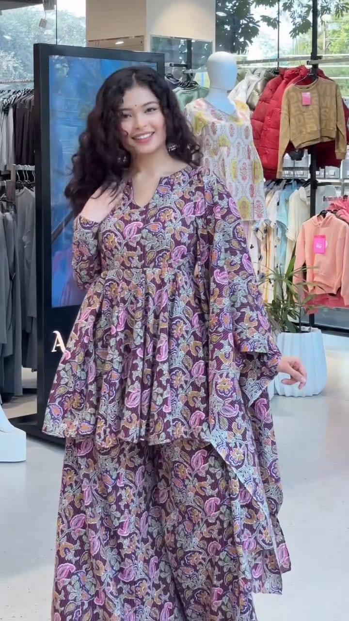 Home Heavenly Aura Kurta plazo set 𝐍𝐞𝐰 𝐂𝐨𝐭𝐭𝐨𝐧 𝐏𝐥𝐚𝐳𝐮 𝐬𝐞𝐭